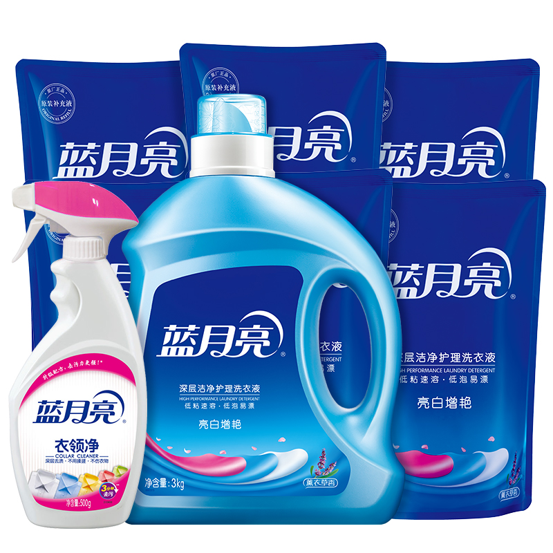 蓝月亮薰衣草亮白增艳3kg+袋1kg*6+喷雾型衣领净500g 支:7 |