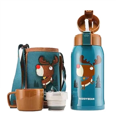 【云仓】杯具熊(BEDDYBEAR)儿童便携保温杯RT101-600ml棕色麋鹿双盖两用 |